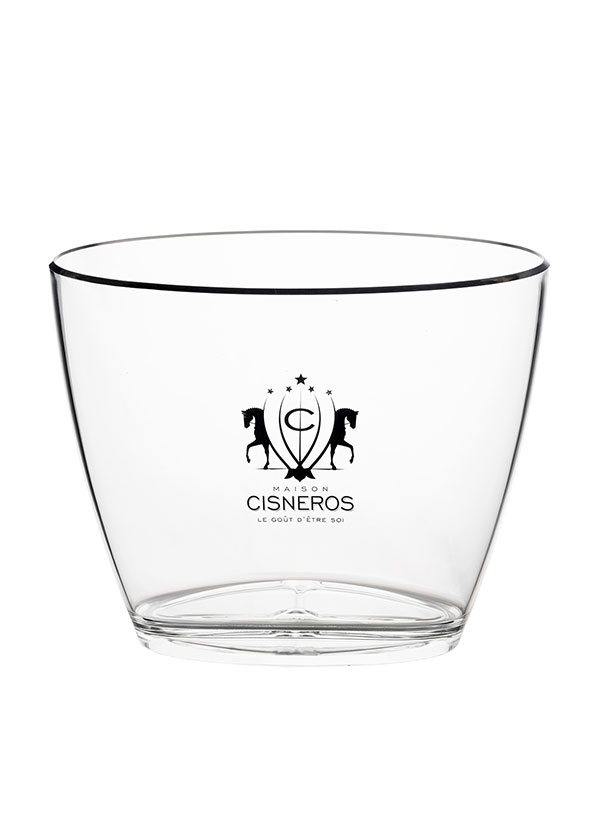 Contemporary bucket for 2 bottles of wine, screen printed with the Maison Cisneros logo.