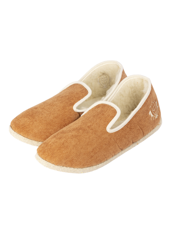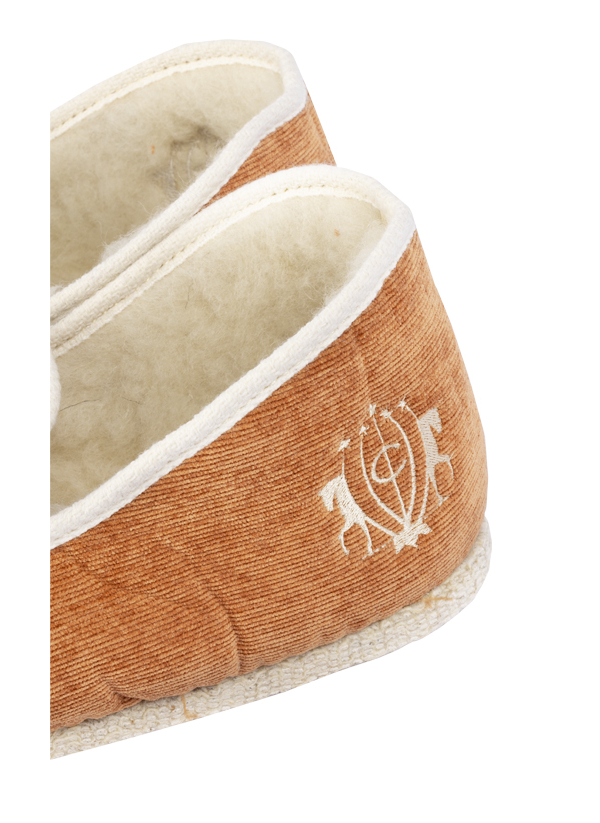 Auténticas zapatillas de casa "Charentaises" con un bonito trenzado en blanco roto y bordado con el logo de Maison Cisneros. Color Terracota