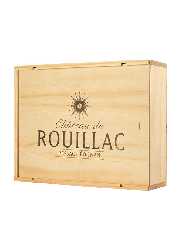Caisse en bois pouvant contenir trois bouteilles de vin.